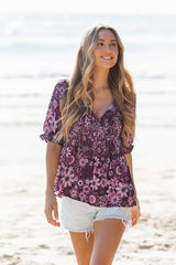 FLOWER CHILD BLOUSE - PURPLE - SZ6